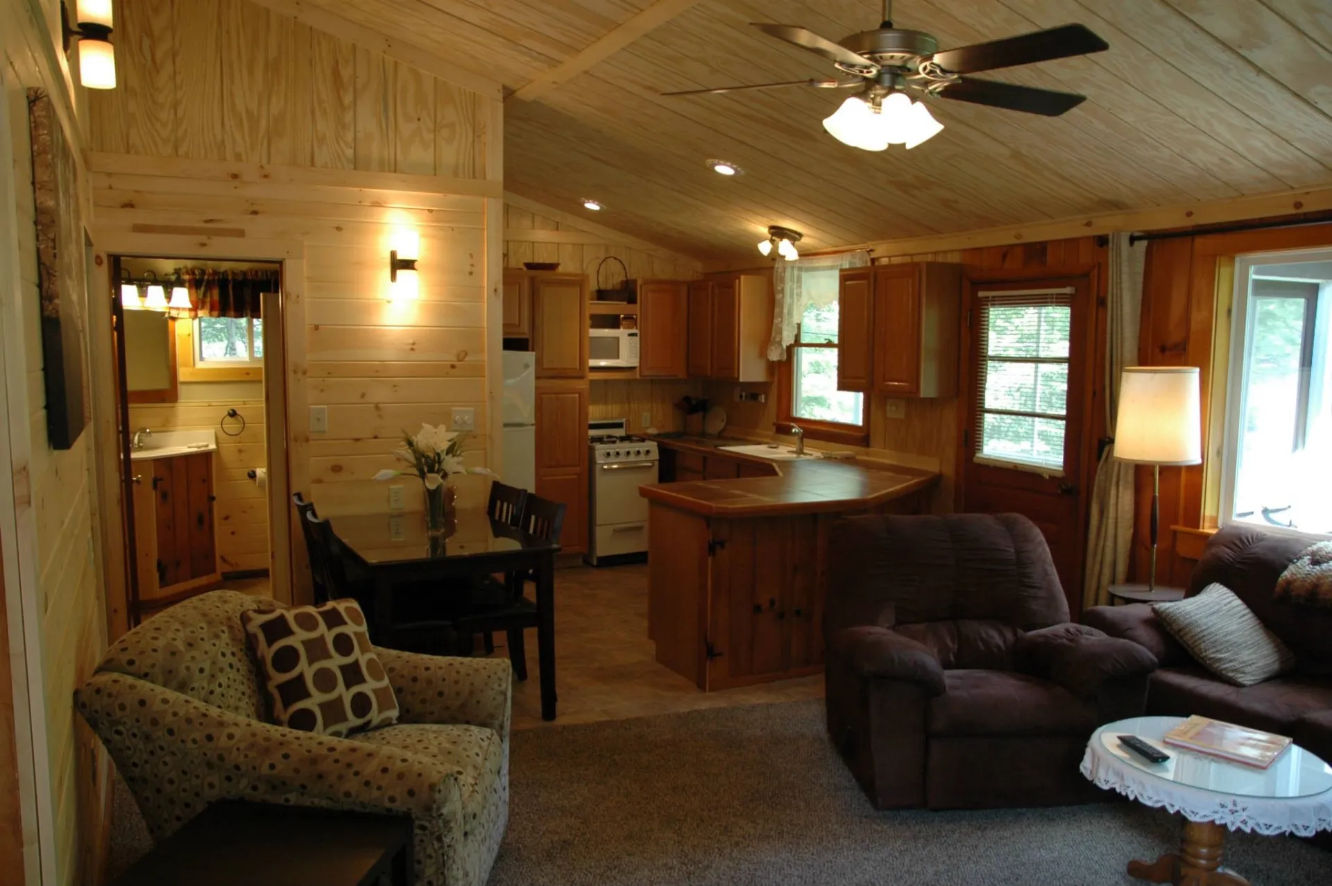 Deer Meadows has six cottages, all renovated and complete with a fully supplied kitchen, private bath, living room with fireplace, flat screen TV, screened porch, sundeck, hibachi grill, and picnic table. One, two, or three bedrooms. Our large double cottage is perfect for multiple families and is spaced for privacy, yet neighborly.