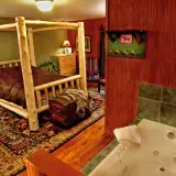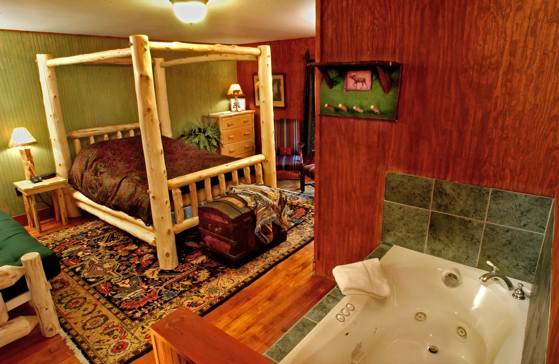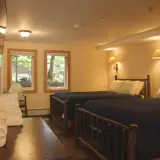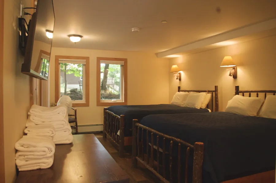 The Woods Inn offers 20 uniquely different rooms, Adirondack guide tents, and a handicapped-accessible room. All rooms are inviting, comfortable, and woodsy. The down comforters, the quiet of no phones or TV in the rooms, and the Great Camp furnishings will make you feel like you're in another era. The new comfy mattresses and the modern bathrooms will feel very 21st century.