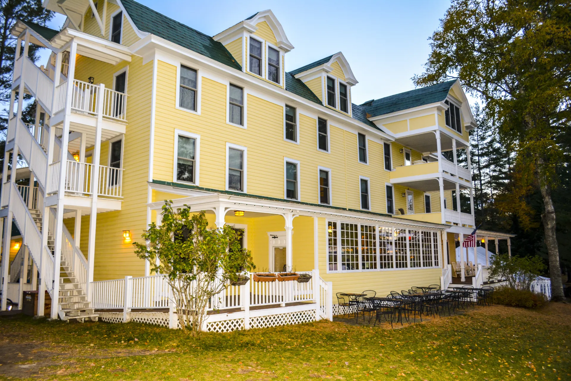 Originally built in 1894 and restored in 2004, the Woods Inn has served as a mountain retreat on the shore of Fourth Lake in Inlet for generations of visitors.